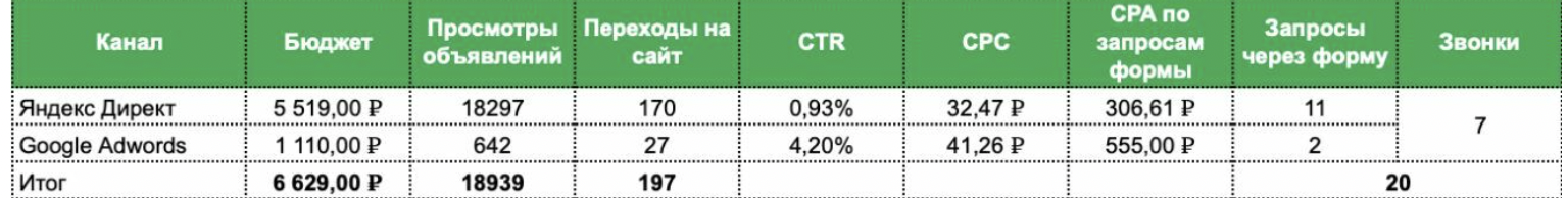 ЧТО СДЕЛАЛИ:1. На 2 недели запустили рекламные кампании в Яндекс.Директ и Google Ads.